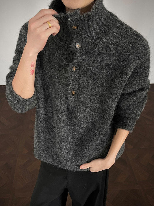 ハーフボタンタートルネック ウール プルオーバーニット
