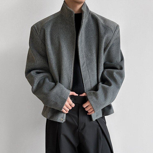 スタンドカラー ウールショートジャケット