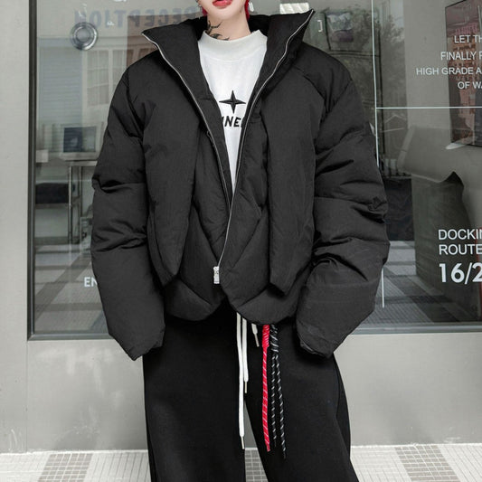 フェイクツーピース コットンパディング スタンドジャケット