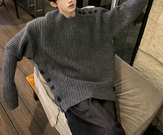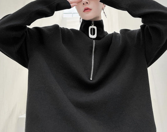 ジッパータートルネック ダメージテイスト ケーブルニット