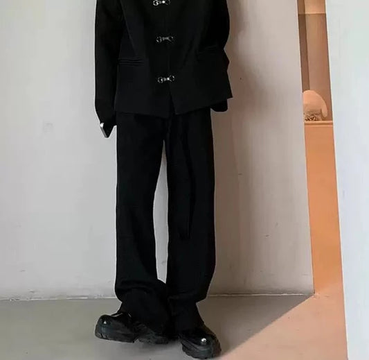 【秋物コーデ2点セット】 ①長袖ジャケット・②黒スラックスパンツ