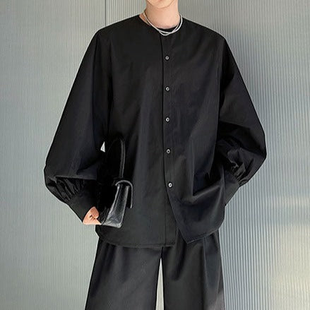デザイナーズシルエット ノーカラー ロングスリーブシャツ