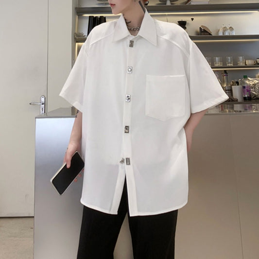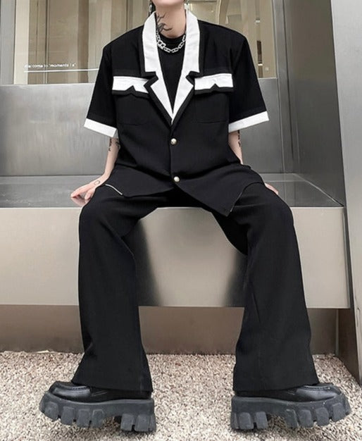 ラペルカラー ショルダーパッド ハーフスリーブシャツ