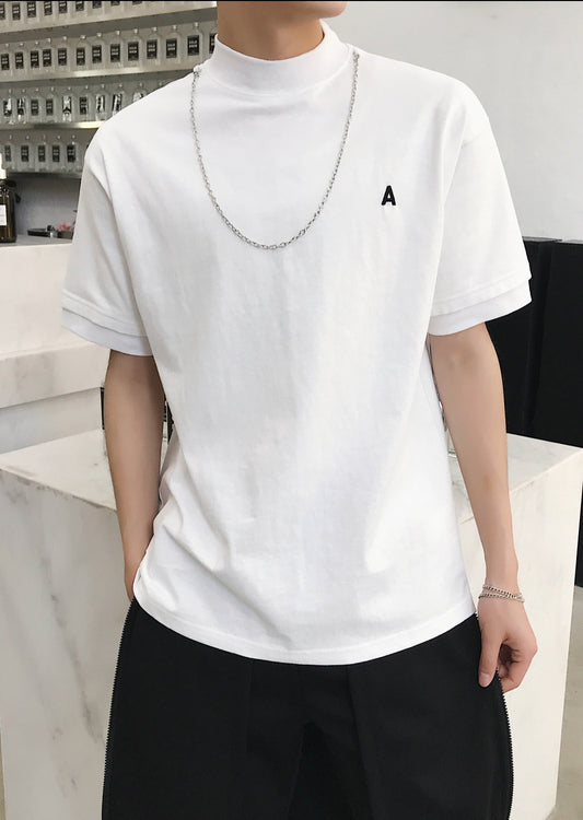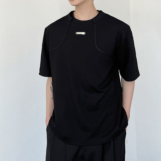 メタルプレート ハーフスリーブ ラウンドネックTシャツ