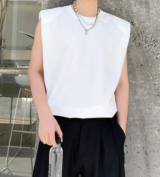パッド ショルダー デザイン ノースリーブTシャツ