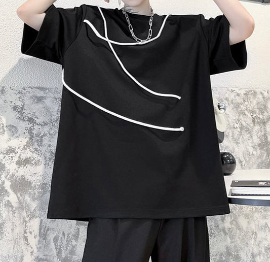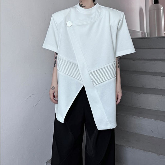 デザイナーズ アシンメトリー パッドショルダー ハーフスリーブTシャツ