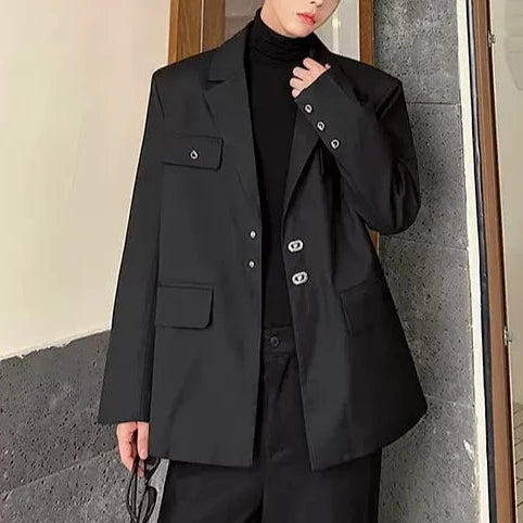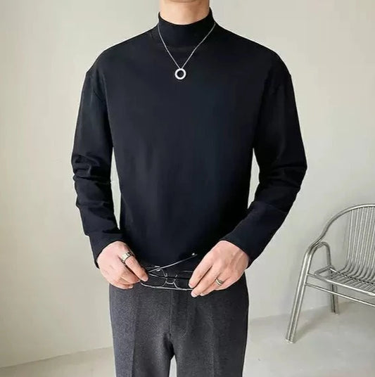 【秋コーデ1日目:3点セット】 ①黒ジャケット ②長袖ハイネックTシャツ黒 ③黒パンツ