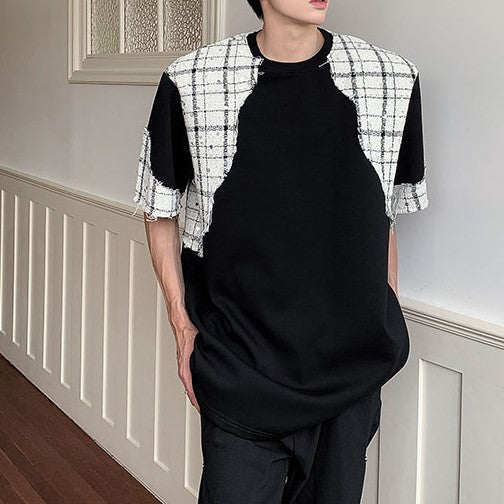 スウィッチ チェックドパターン パッドショルダー ハーフスリーブTシャツ