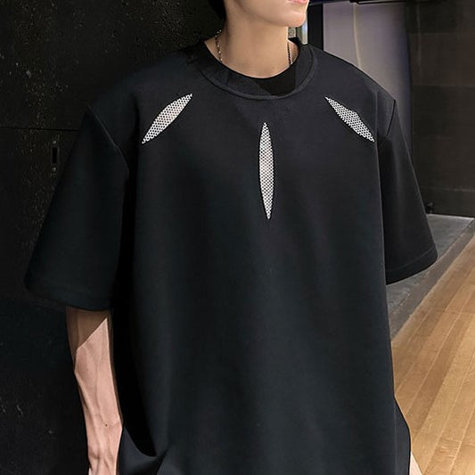 ポイントメッシュデザイン パッドショルダー ハーフスリーブTシャツ