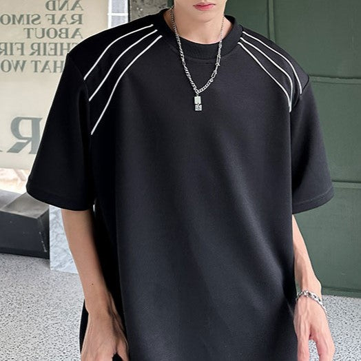 ラインデザイン パッドショルダー ハーフスリーブTシャツ