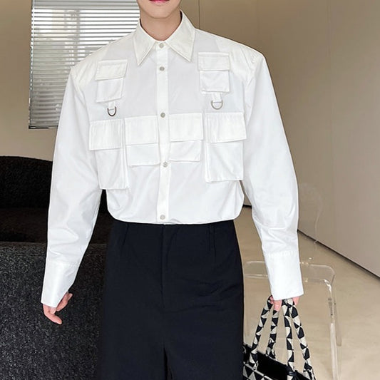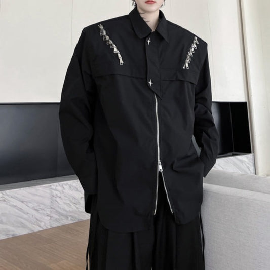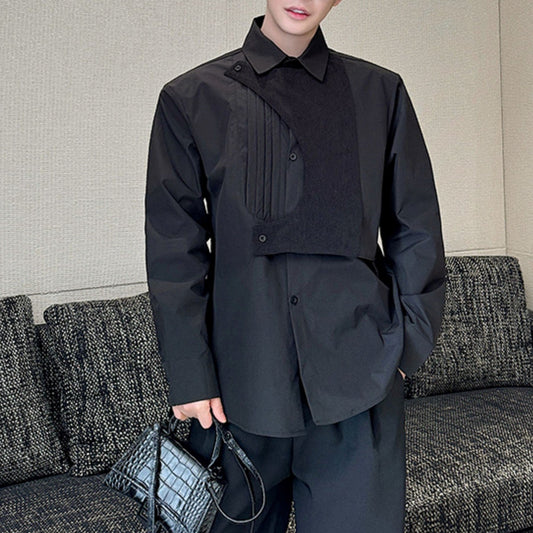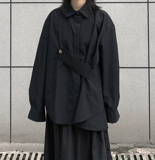 フラップデザイン アシンメトリー ロングスリーブシャツ