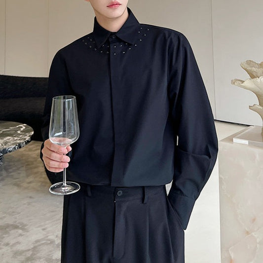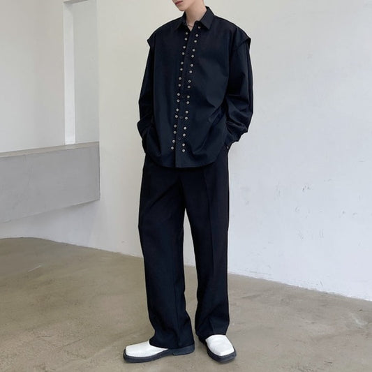 ソリッドカラー マルチプル パッドショルダー ロングスリーブシャツ