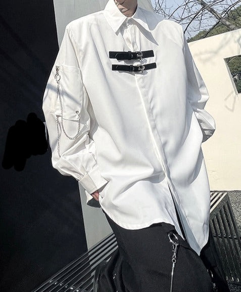 ベルトデザイン チェーンアクセント ロングスリーブ シャツ