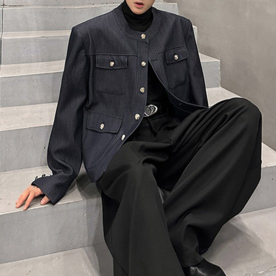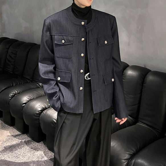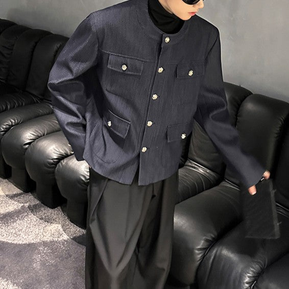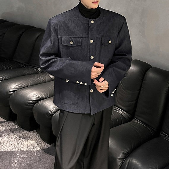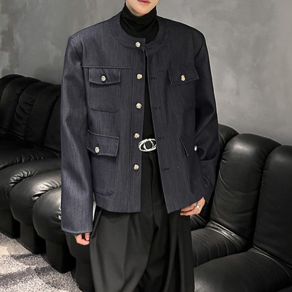ノーカラー ヴィンテージネイビー ボタンジャケット