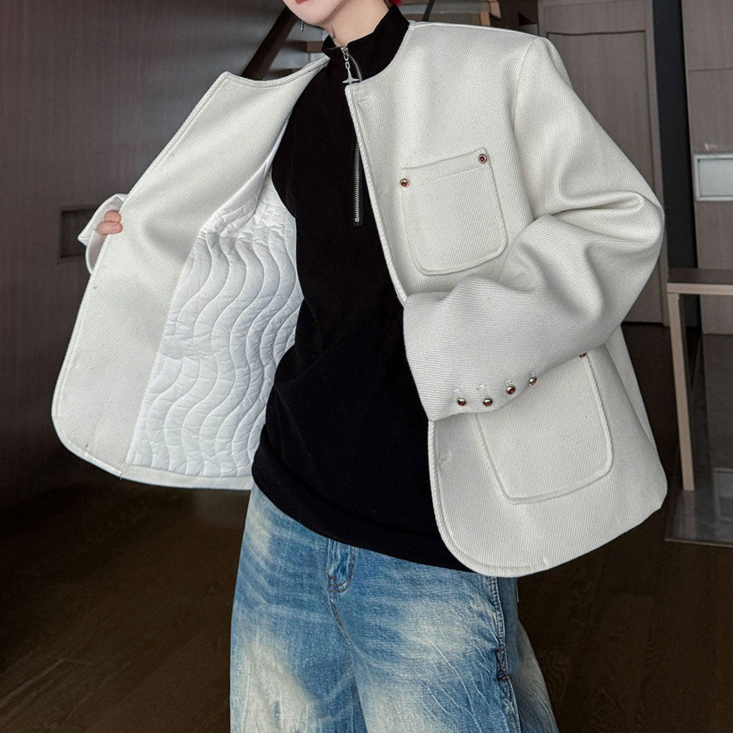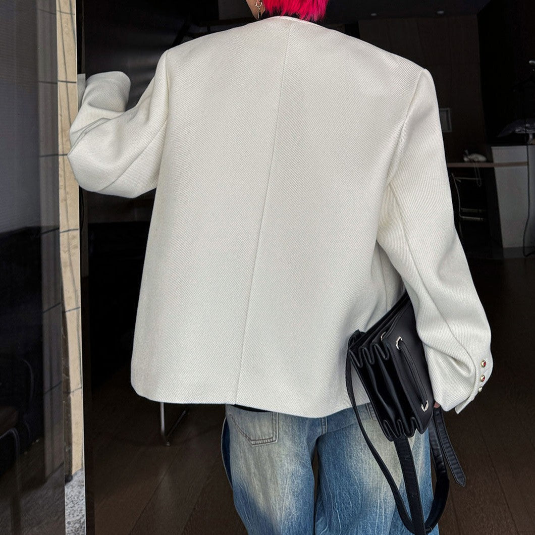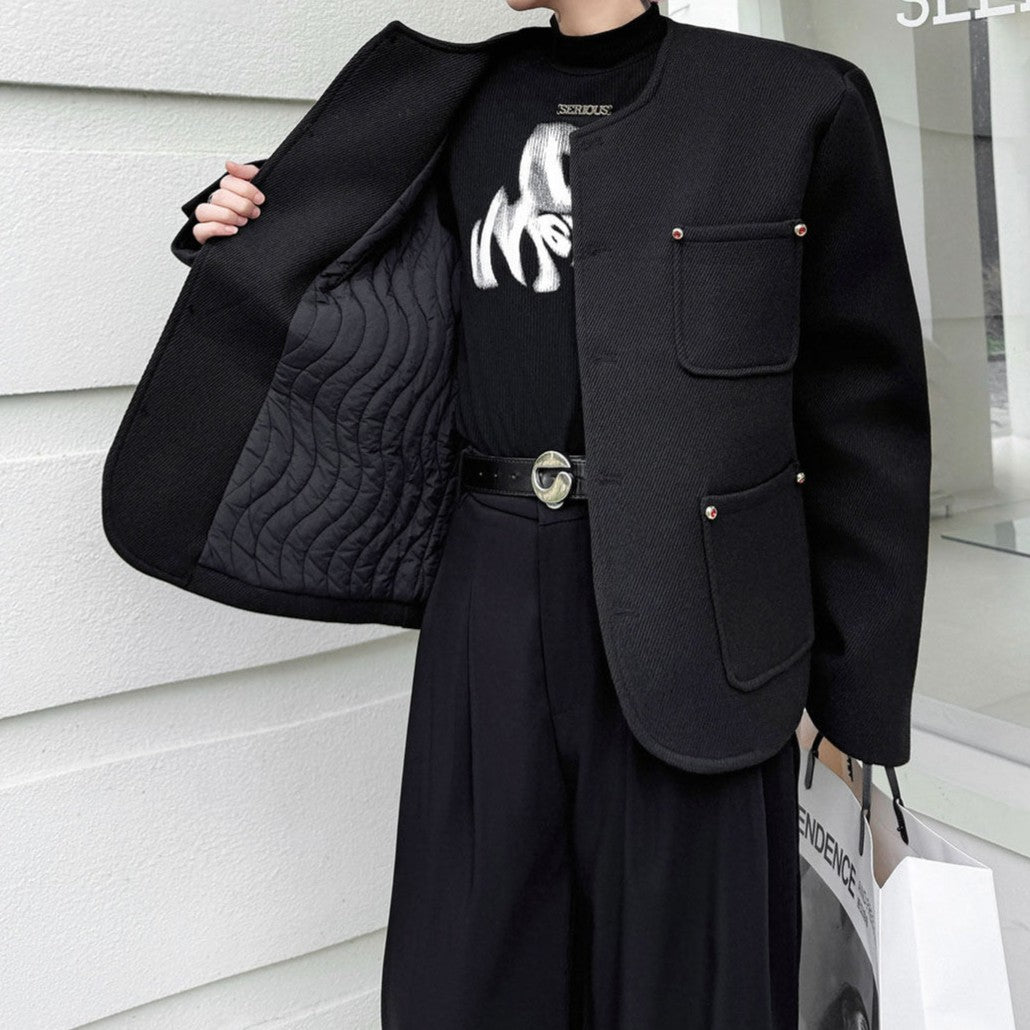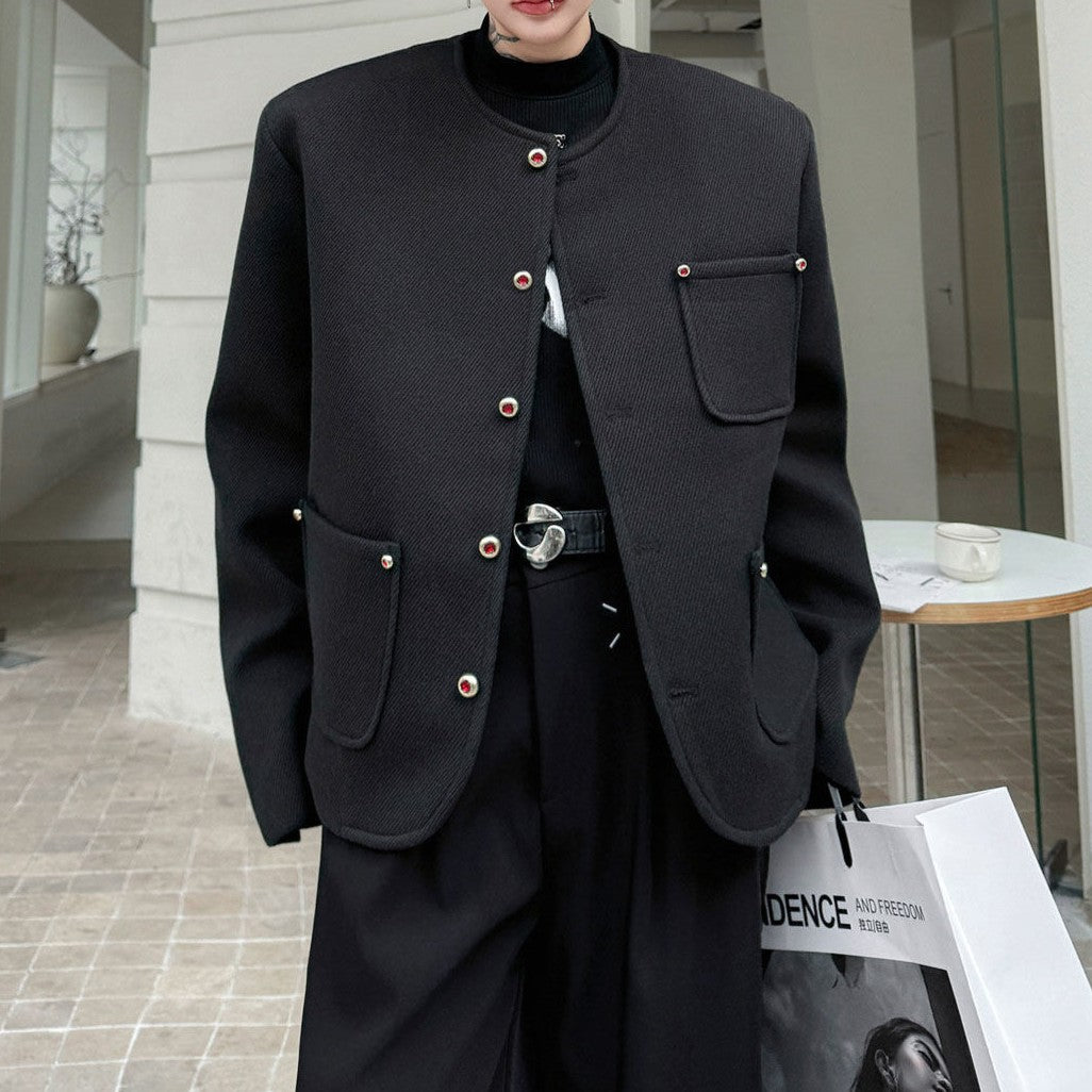 ノーカラー ウール ボタンショートジャケット
