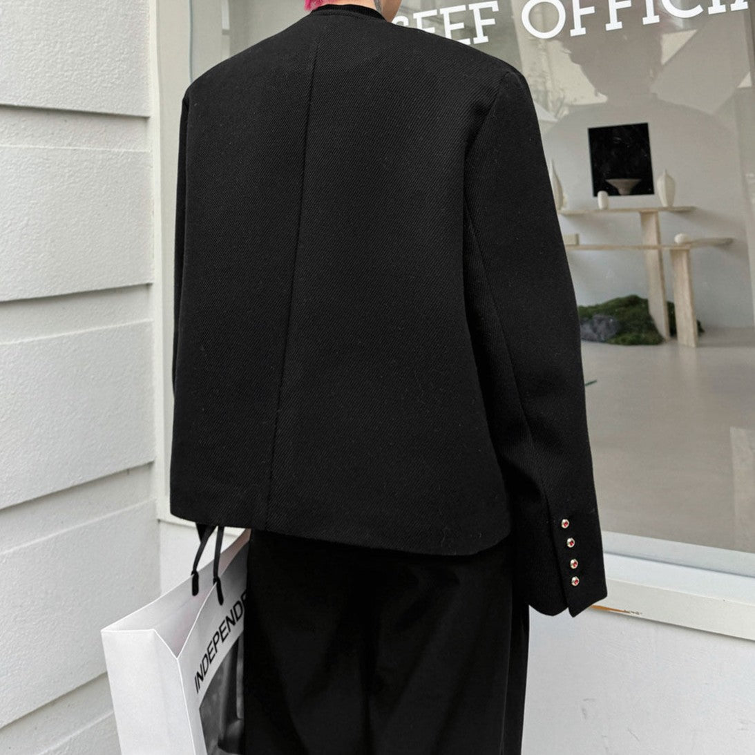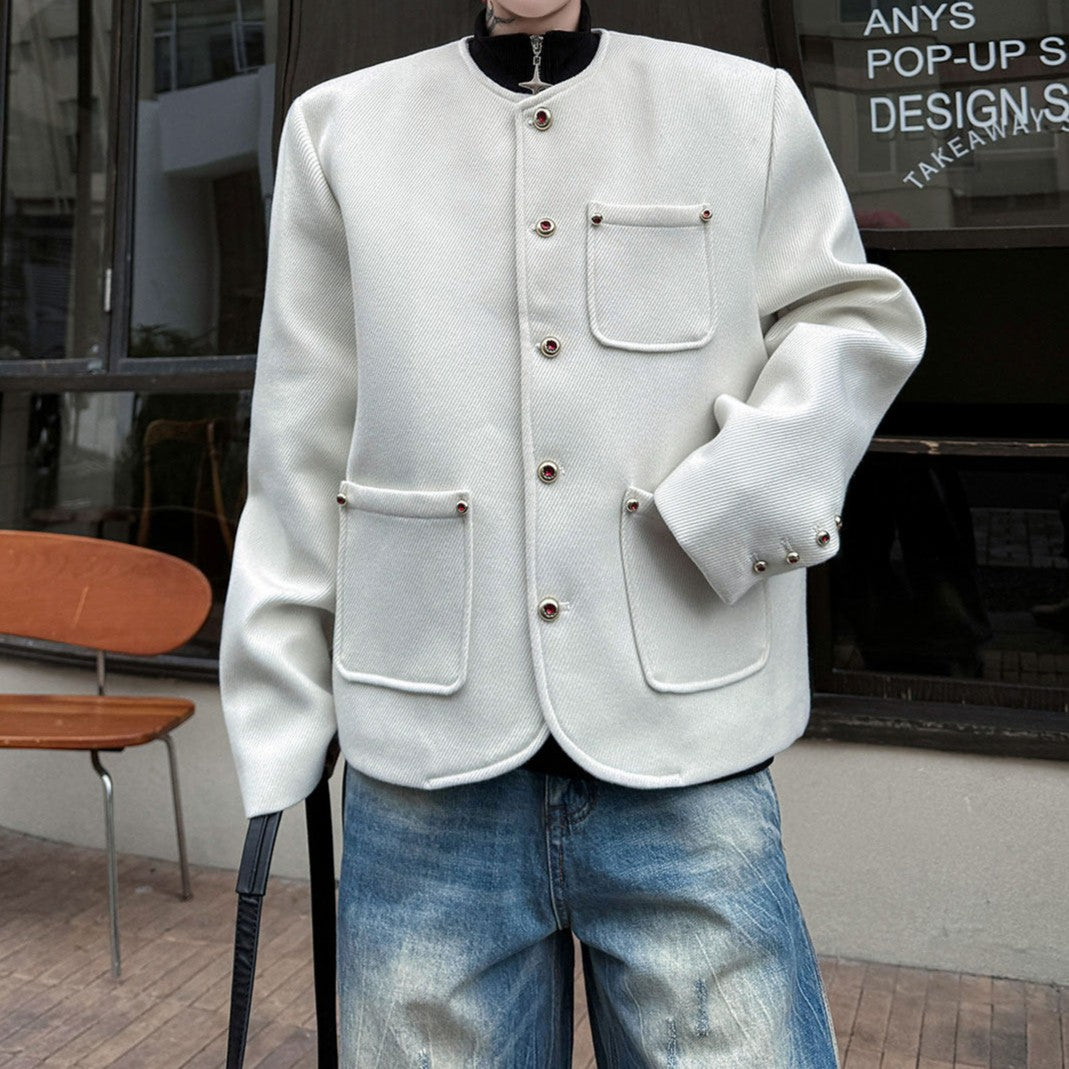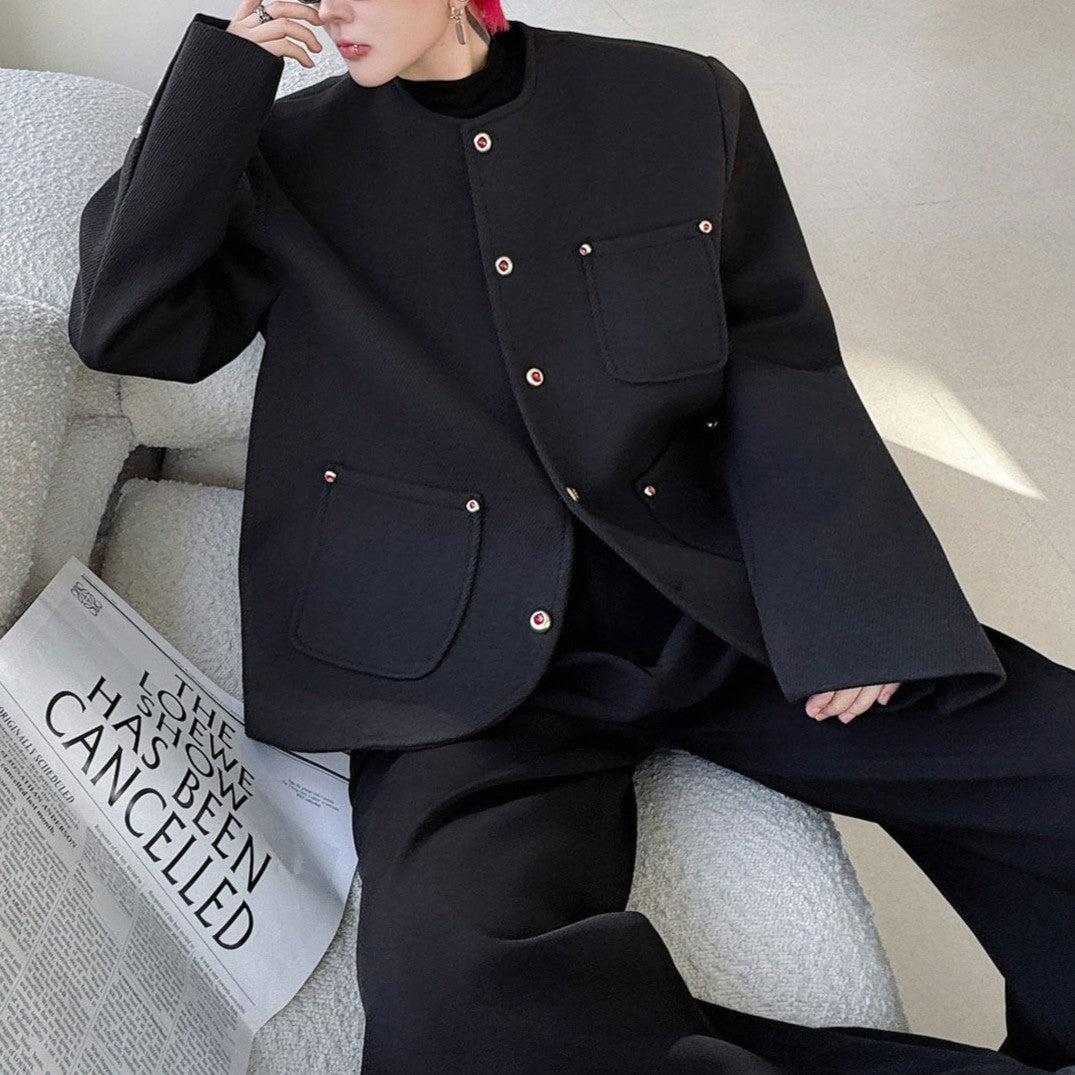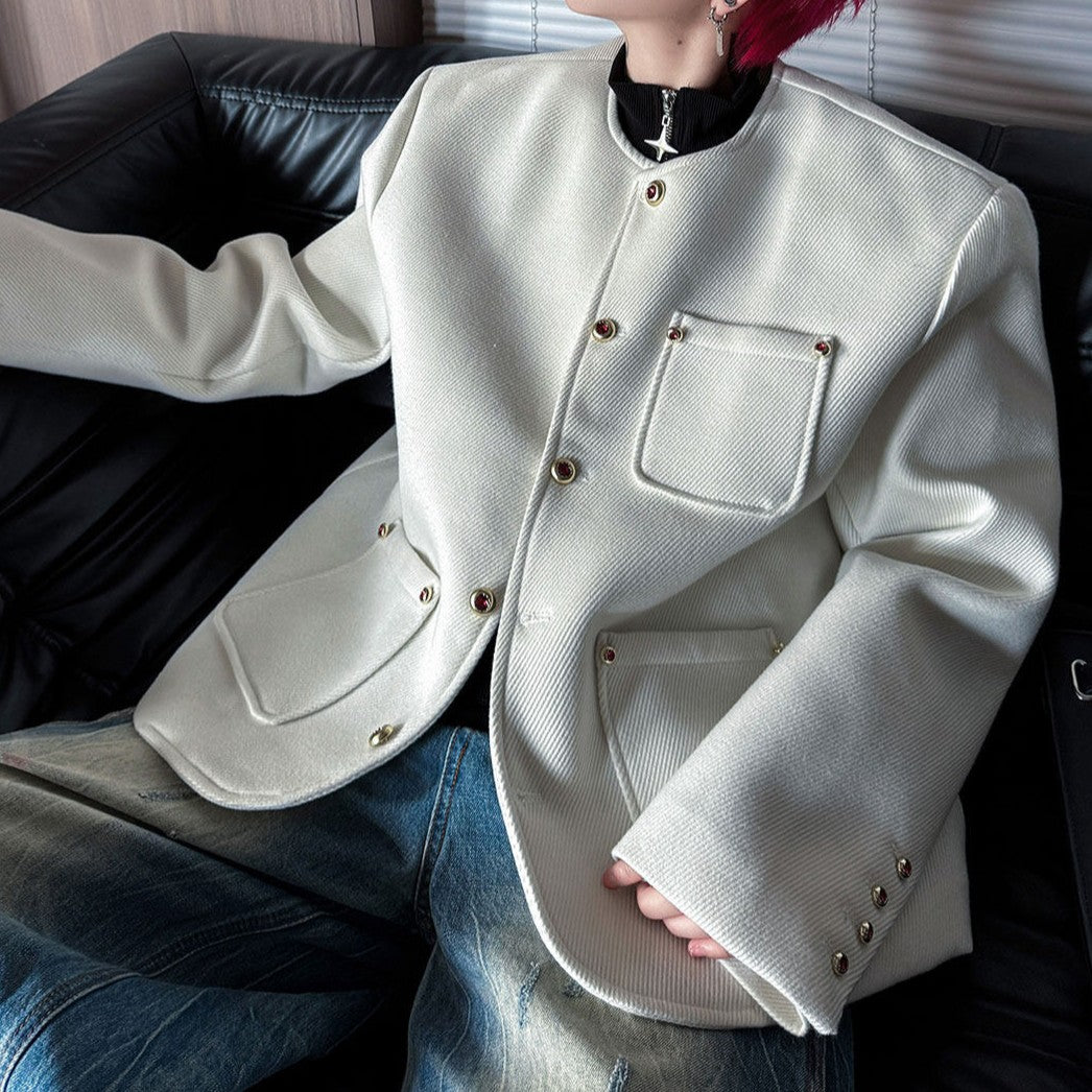 ノーカラー ウール ボタンショートジャケット