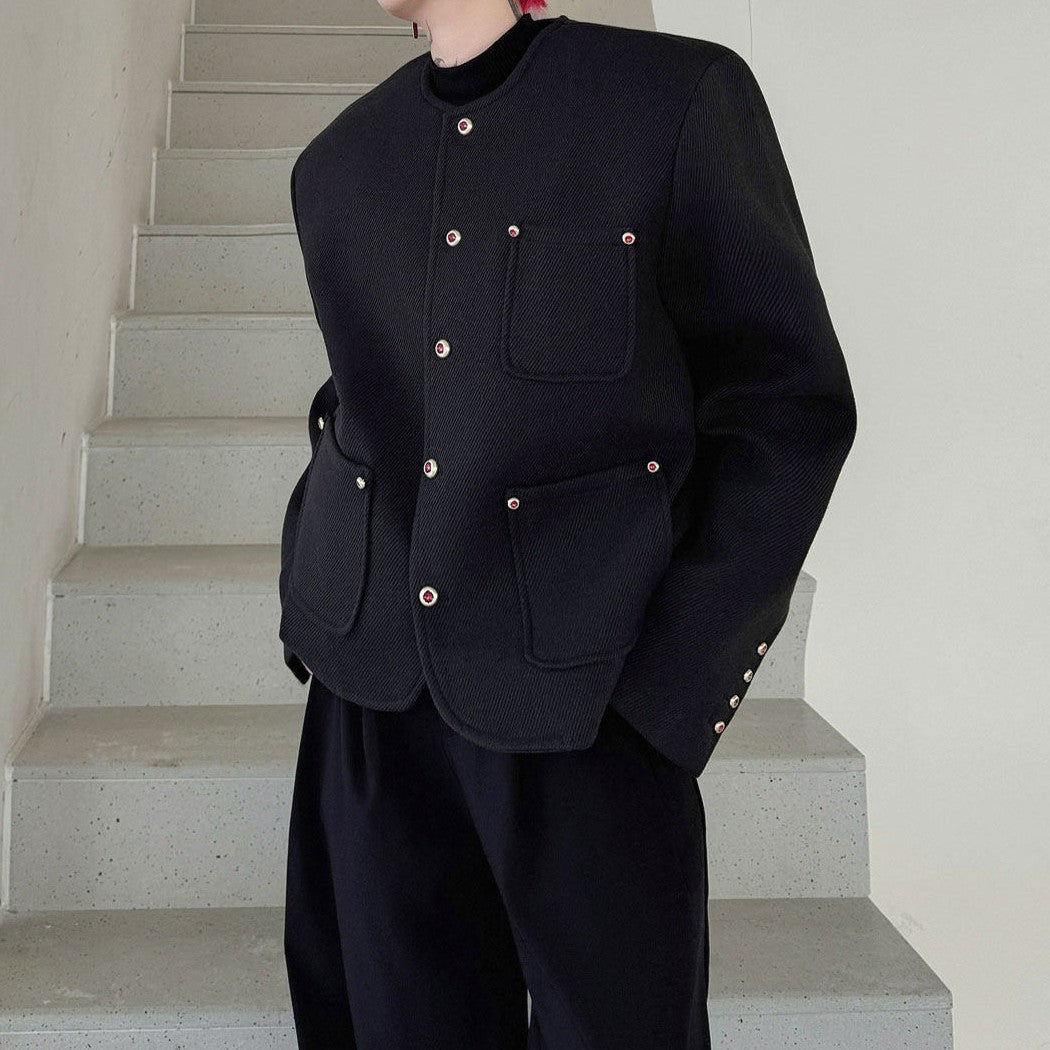ラインストーンボタン ノーカラージャケット