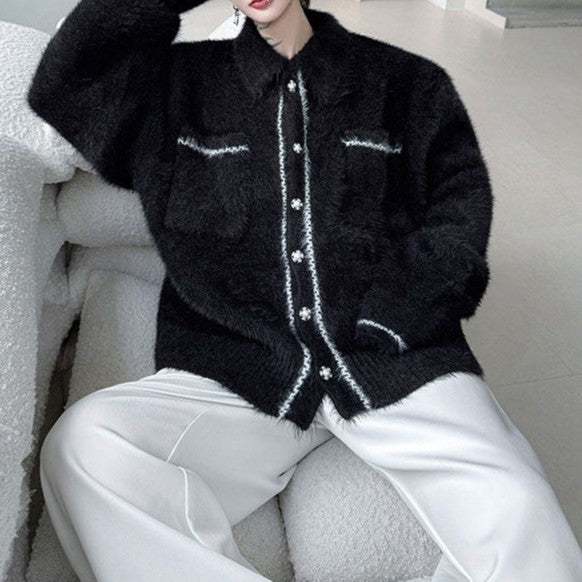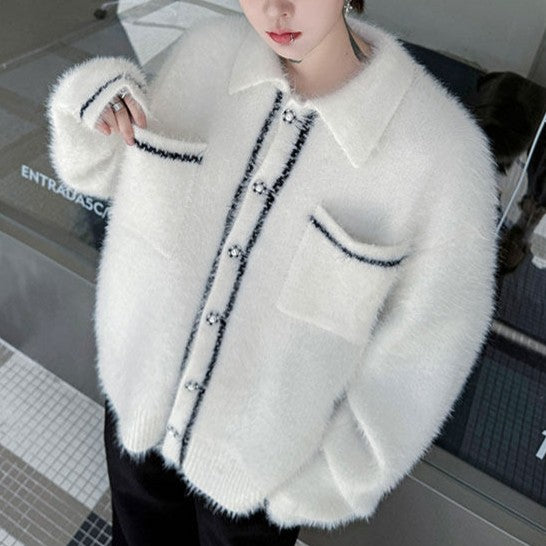 ジッパータートルネック ダメージテイスト ケーブルニット