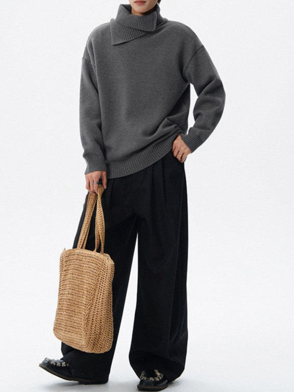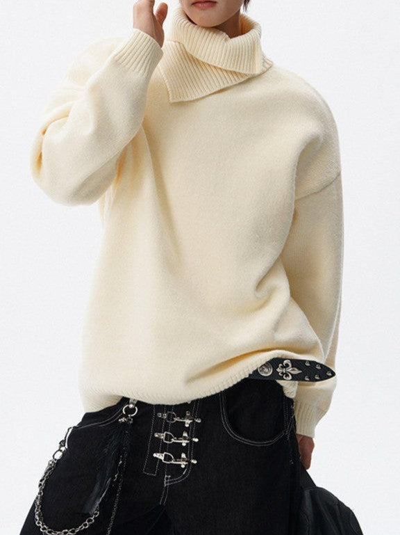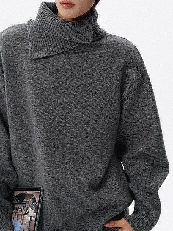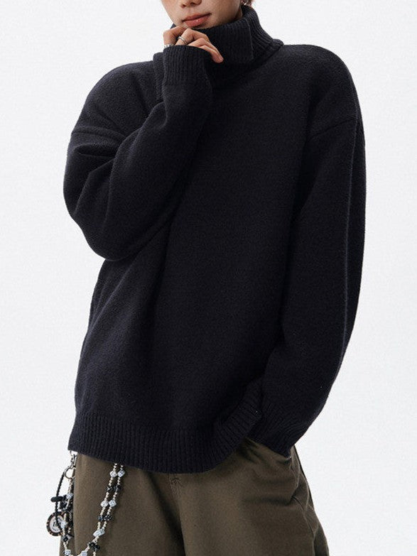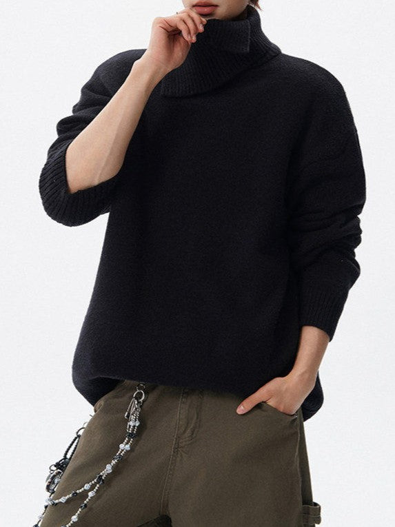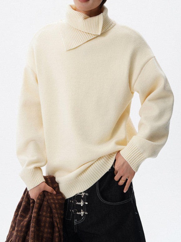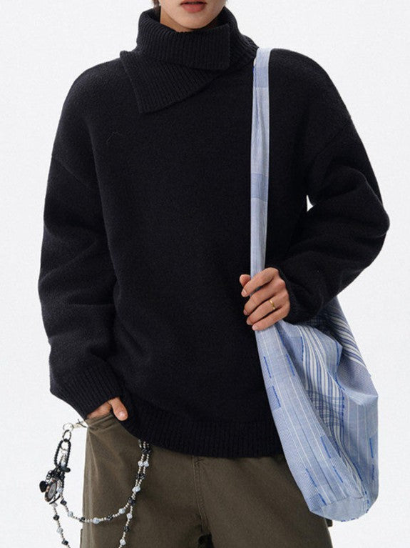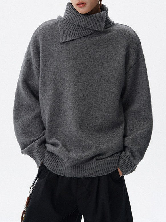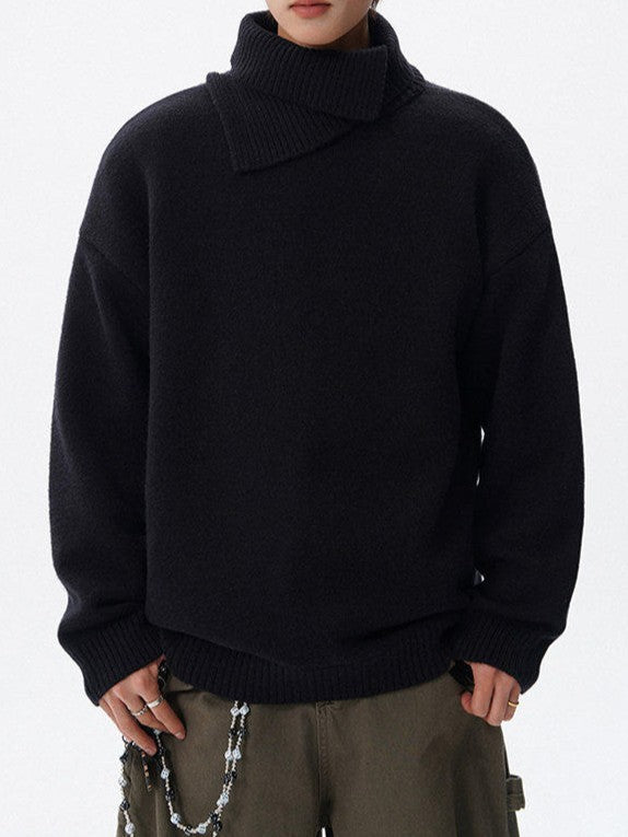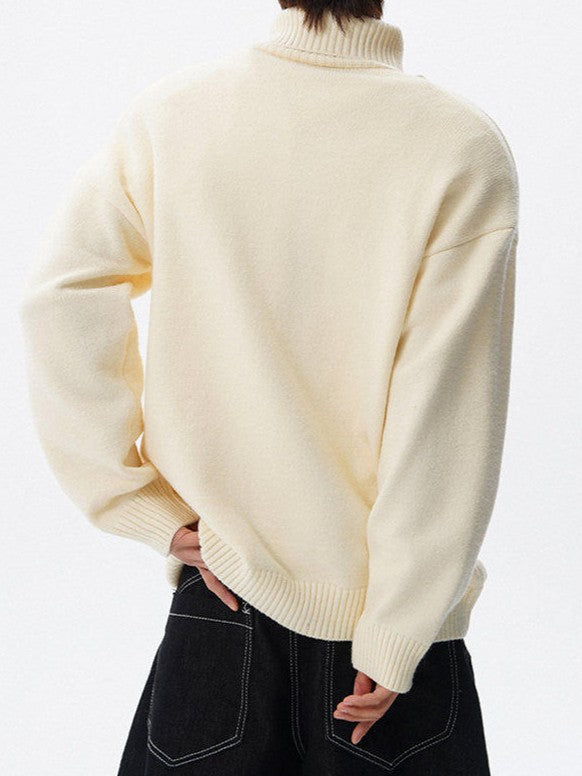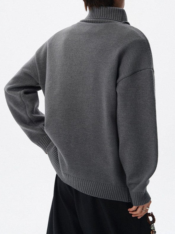ジッパータートルネック ダメージテイスト ケーブルニット