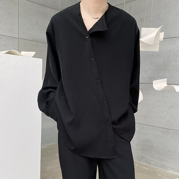 アシンメトリー ラウンドネック ロングスリーブシャツ