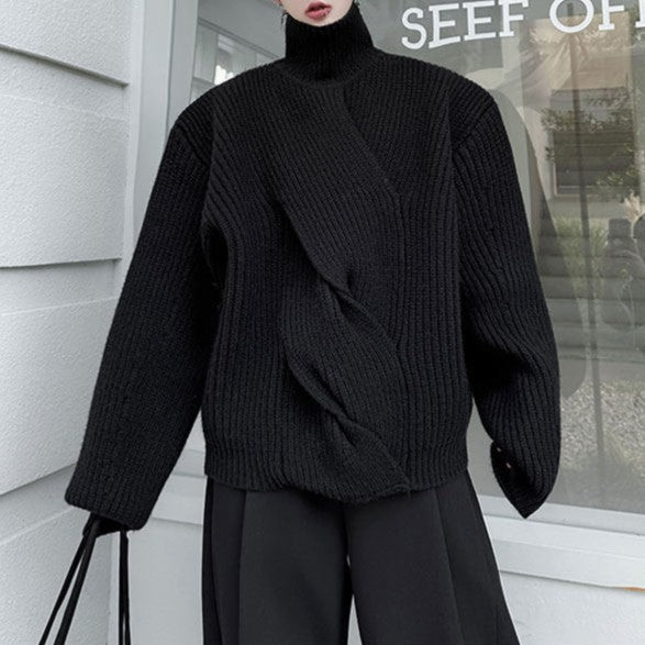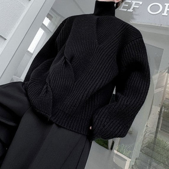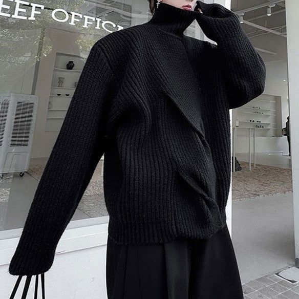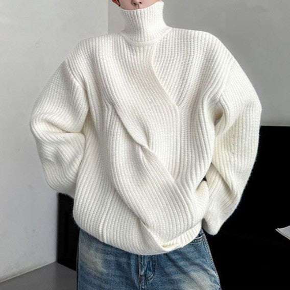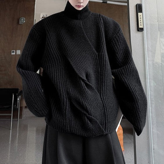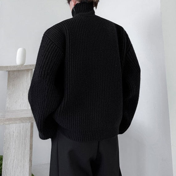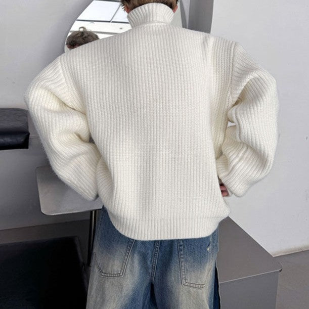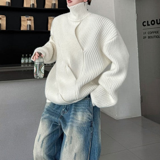 ジッパータートルネック ダメージテイスト ケーブルニット