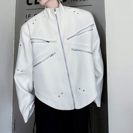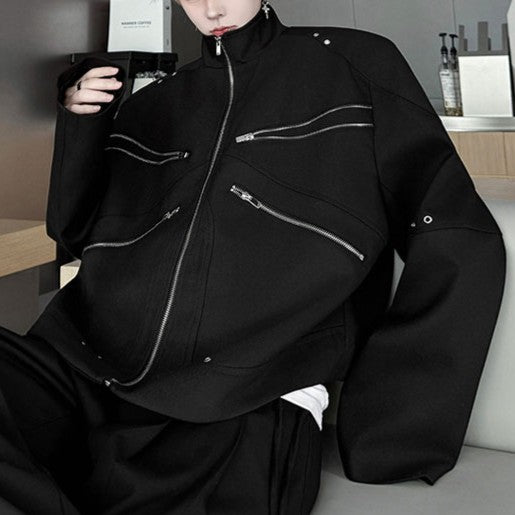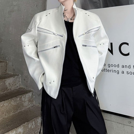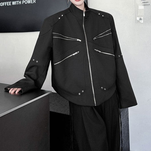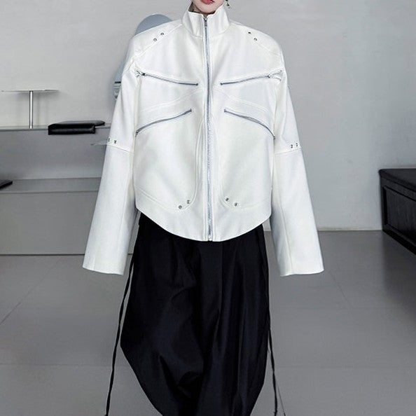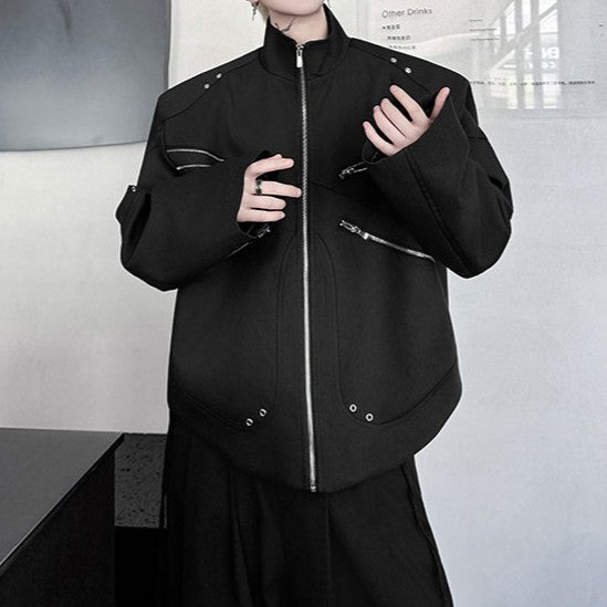 ジッパーデザイン スタンドカラー ショートジャケット